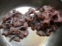 3.ミンチした手足と他材料、塩、砂糖、味の素を混ぜ合わせます