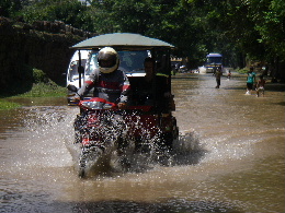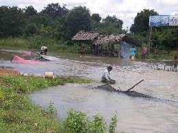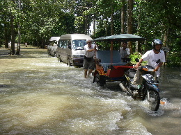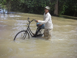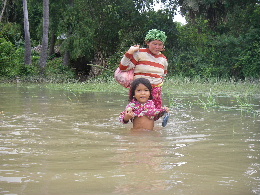 ここは、普段草が生えていて、牛が遊牧されている場所です。 この家は日本の言葉で言うと「離れ小島」とい言うんだとBornに教えてもらいました。 イカダを使ってバイクなどを運んでいました。 シェムリアップにこれだけ被害が出たのは遥か昔にあったかもしれませんが、 初めてです。 村では葉っぱの屋根が風で飛んだり、家が傾いたり大変でした。 僕とにしとBornで村の貧しい人の家を現在修復中です。またお知らせします。ビチェット