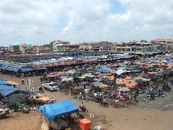 クラチエメコン川沿いにある街でイルカもいます