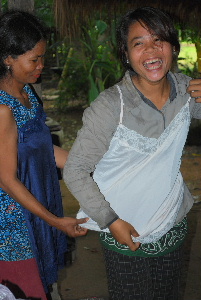 村の人々は遠慮がちに古着を選んでいましたが、受取ったら上記の通り大喜びしてくれました。