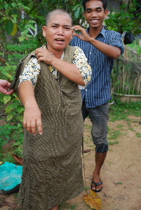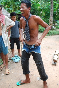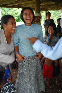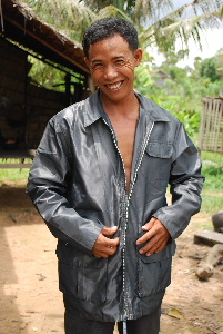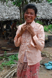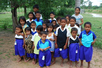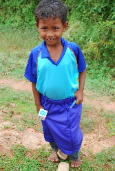 今回は小学校から体操着も届きました。村には子供がたくさんいますので男の子を中心に着せていきました。カンボジアの子供たちにもなかなか似合っています。