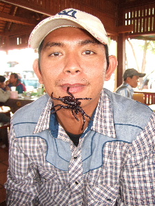 カンボジア人の大好きなタランチュラの佃煮(コンポントムにて。私はどうしてもまだ食べれません)