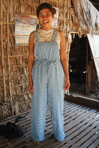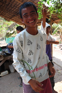 今回も画像の通りとっても喜んでくれました。 カンボジアの人は基本的にとてもシャイです。家が点在している集落は、1軒ずつ貧しい家を周るのですが、最初はとてもおとなしく古着を選んだりしています。しかし近所の人が集まってくると 大騒ぎ!その反動が見ていてとても楽しいです。 朝倉ファミリーの皆さん、亀村さん、Toda先生、ありがとうございます! カンボジアC&F基金では、古着の支援をお願いしております。 次へ 古着21 古着1へ 写真館TOPへ