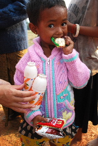 普段栄養が取れていない貧しい人々は風邪をひくだけで大病になることも多く、時には死に繋がります。なのでこの時期はまず風邪をひかないことが大事です。一番暖かそうな服をお年寄りをメインに渡していきました。