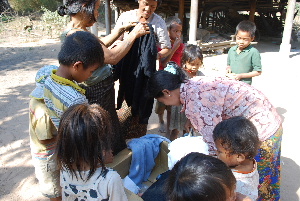 毎回そうですが、古着を受け取り喜んでくれる姿を見ると私まで嬉しくなります。 嬉しく思いながらも、家族の状況や経済状況を聞き、村の人々の厳しい現実を思い知らされます。 lこの国の発展が早く貧しい人々にも行き届く事を強く願います。 佐藤さん、たくさんの古着をありがとうございました。関さんもいつもありがとうございます。 カンボジアC&F基金では、古着の支援をお願いしております。 次へ 古着6へ 古着1へ 写真館TOPへ